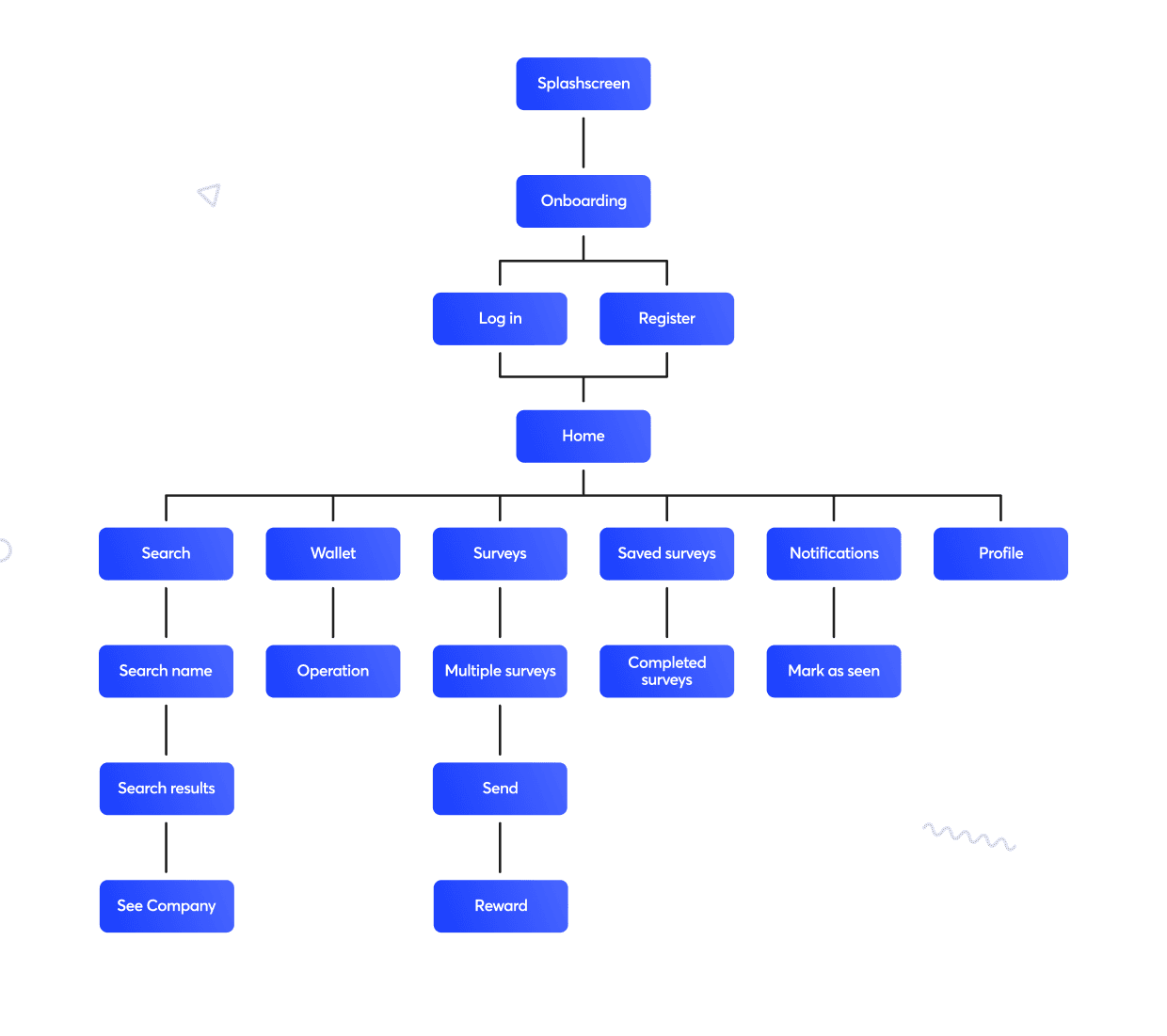 This shows a path of where the user is going to navigate. If he's new, most likely he'll get greeted with a quick onboarding and register, otherwise, just a login.