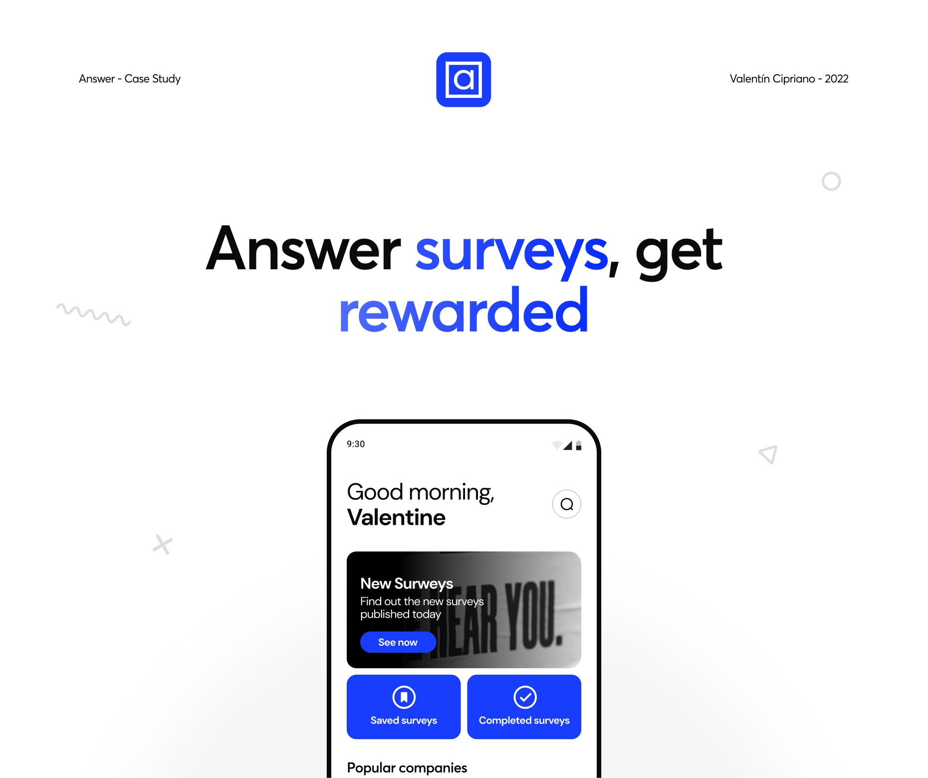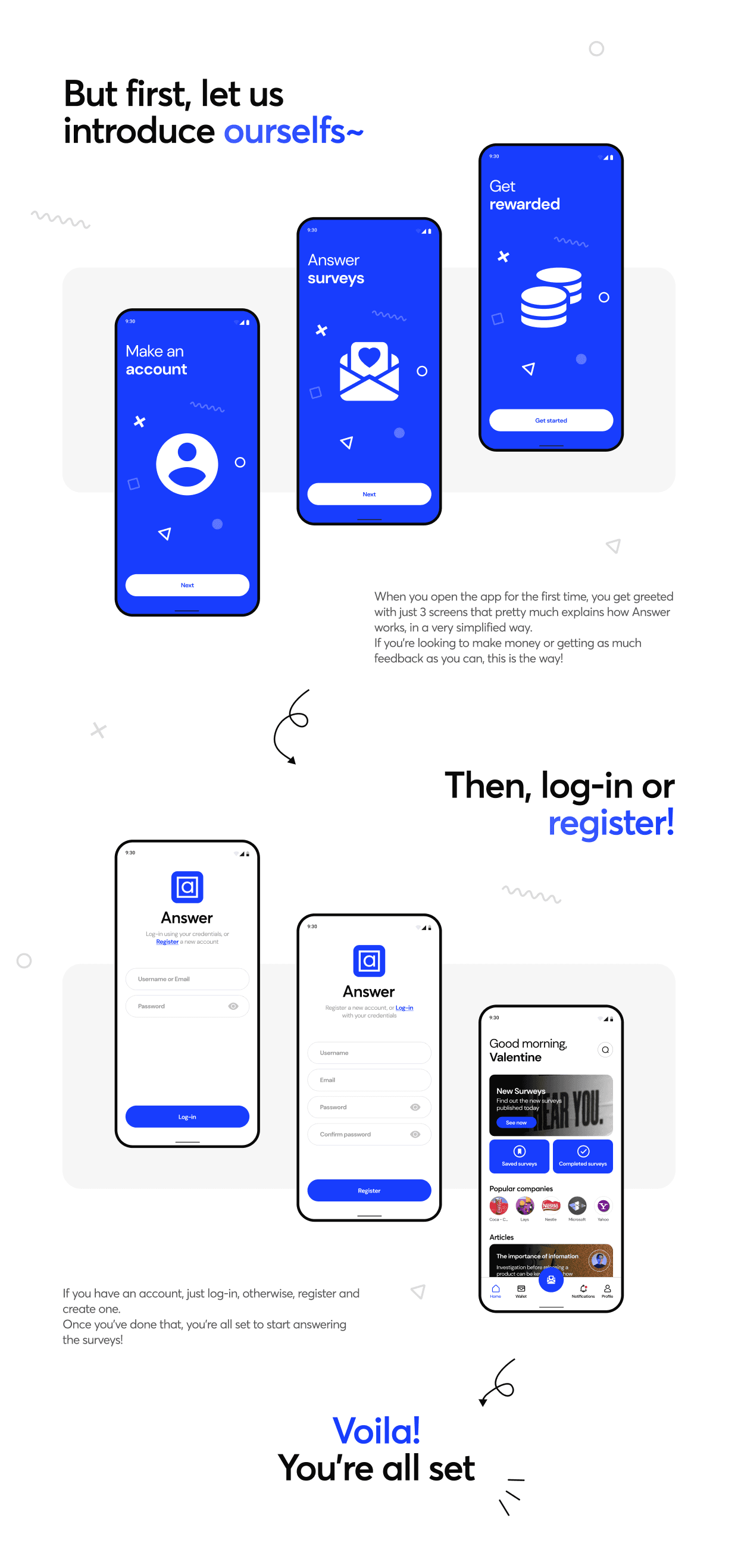 Answer is a concept app designed with the purpose of rewarding users for answering surveys made by companies OR other users.