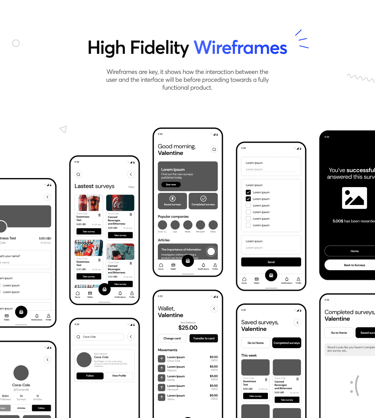 Including the wireframes, we have up to 50 screens of the whole app with the different screens you can navigate.